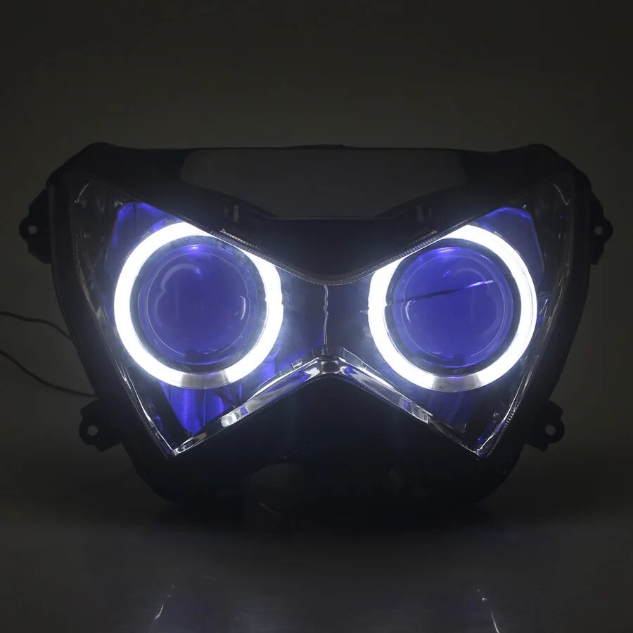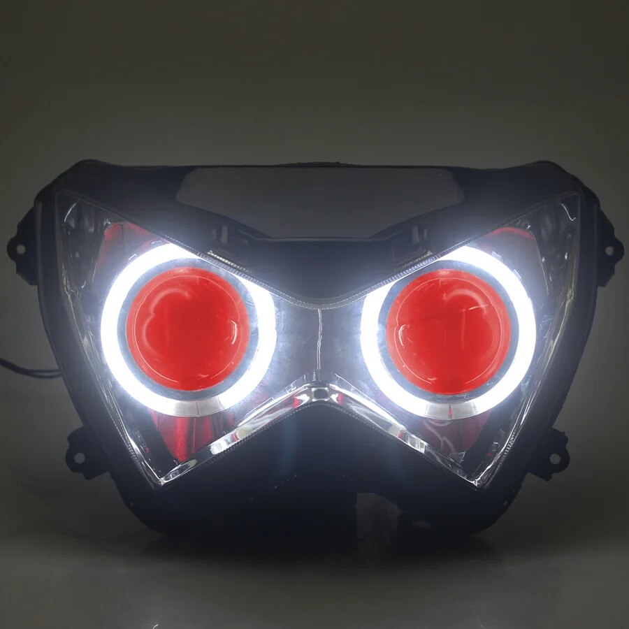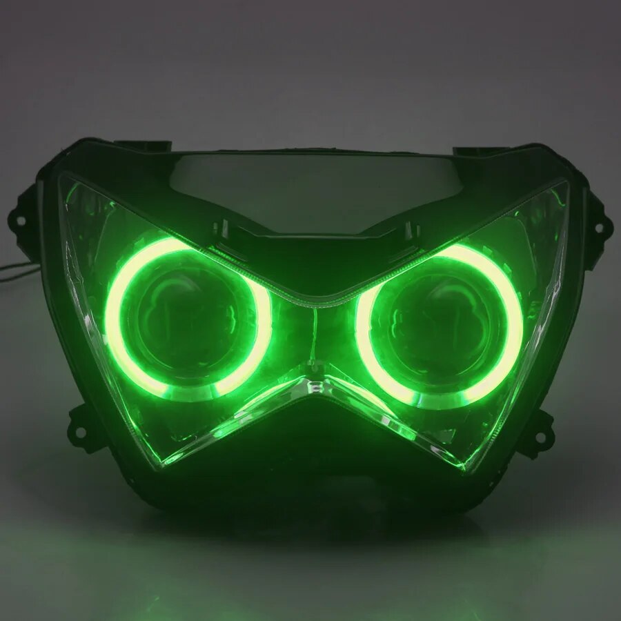 This is a fully assembled HID Bi-Xenon Projector Headlight Assembly for Kawasaki Z800 2013 2014 2015 2016, Z250 2013 2014 2015, Z300 2015 2016 Motorcycles